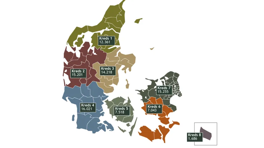Kortet viser antal medlemskaber i kredsene pr. 1. november 2025.